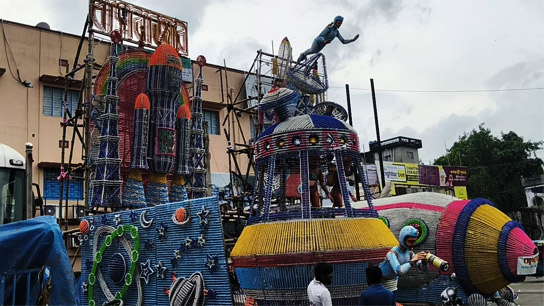 থিমের মন্ডপের পাশাপাশি এখন শোভাযাত্রার আলোতেও চলে এসেছে বিভিন্ন ধরনের থিম। এ বছর চন্দননগর বাগবাজার জগদ্ধাত্রী পুজো কমিটির শোভাযাত্রার আলোর থিম মহাকাশ অভিযান। তিনটি গাড়িতে তৈরি করা হয়েছে এই থিমটিকে।