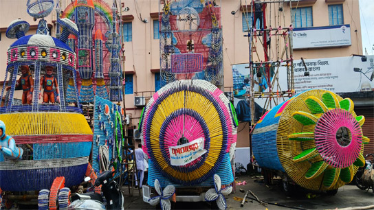 কোন শিল্পী কত ভালো আলোর জাদু দেখাতে পারে তারই প্রতিযোগিতা চলে। পাশাপাশি শোভাযাত্রার আলো দেখে আগামী এক বছর দেশ তথা রাজ্যের বিভিন্ন প্রান্তে হওয়া নানান অনুষ্ঠানে লাইট লাগানোর জন্য তাদের বরাত মিলবে। তাই আলো শিল্পীরা এখন ব্যস্ত সেই শোভাযাত্রার লাইট রেডি করতে।