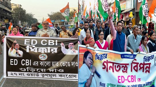 অন্যদিকে পশ্চিম মেদিনীপুরের ঘাটাল শহরে ব্লক তৃণমূলের উদ্যোগে প্রতিবাদ মিছিল ঘড়ি মোড়ে গিয়ে শেষ হয়। মুর্শিদাবাদের বহরমপুর পুরসভার পুরপিতা নাড়ুগোপাল মুখোপাধ্যায়ের নেতৃত্বে শহরের মূল রাস্তায় প্রতিবাদ মিছিল বের করা হয়। একইভাবে উত্তরবঙ্গের জলপাইগুড়িতেও তৃণমূল কংগ্রেসের পক্ষ থেকে বিক্ষোভ প্রদর্শন করা হয়। তৃণমূল নেতৃত্বের দাবি, রাজনৈতিকভাবে লড়াই করতে না পেরে বিজেপি কেন্দ্রীয় এজেন্সিকে দিয়ে আইপ্যাক ও তৃণমূলের আইটি সেলে হানা দিয়ে কণ্ঠরোধ করার চেষ্টা করছে।