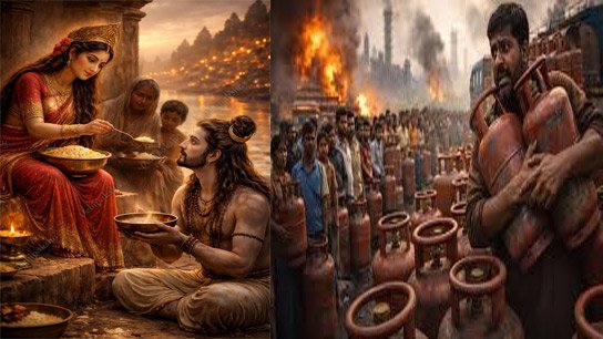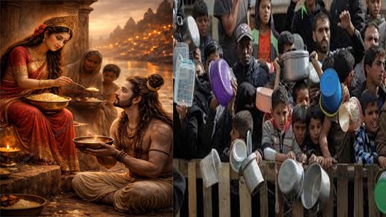 এমনকি— মহাদেব স্বয়ংও অনুভব করলেন সেই অভাব। তিনিও বেরোলেন ভিক্ষার ঝুলি নিয়ে… দুয়ারে দুয়ারে ঘুরলেন… কিন্তু আশ্চর্য— কোথাও এক কণাও অন্ন নেই!