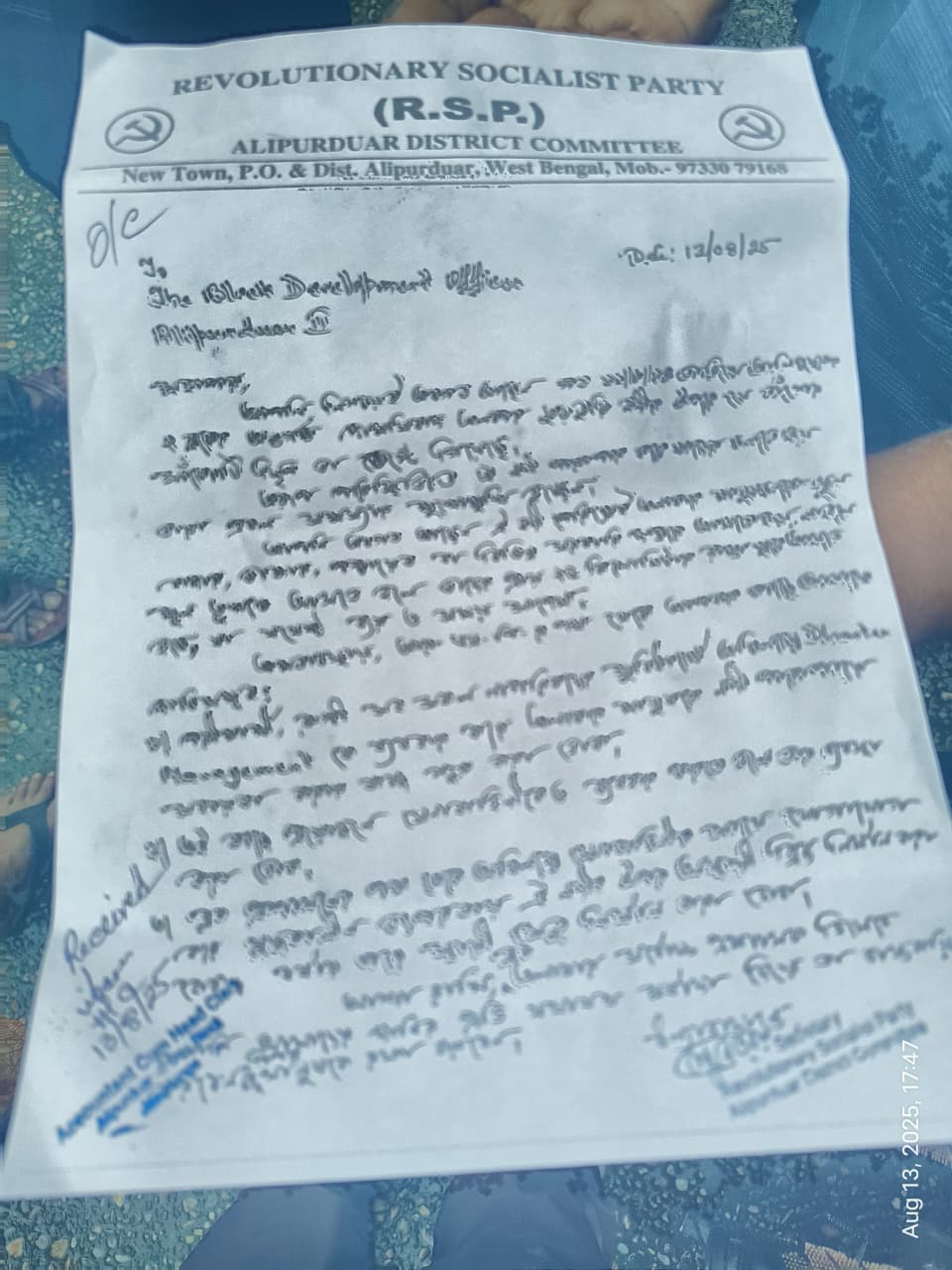 সাধারণ মানুষের এই দুর্দশা নিরসনে অবিলম্বে Digastar Management-এর মাধ্যমে পারাপারের স্থায়ী ব্যবস্থা গ্রহণ ও বর্তমানে চলাচলের জন্য নৌকা বা বোর্টের ব্যবস্থা এবং আলিপুরদুয়ার জেলার ভাঙাচোরা ও বেহাল রাস্তাঘাটের দ্রুত মেরামতের দাবি সহ একাধিক দাবিতে আজ BDO-র নিকট প্রতিনিধিমূলক ডেপুটেশন পেশ করল আরএসপি আলিপুরদুয়ার জেলা কমিটি।