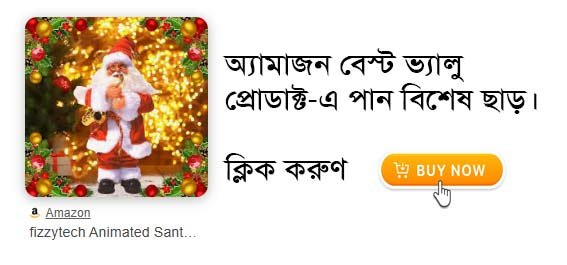 লাল-সাদা পোশাক পরে দাঁড়িয়ে রয়েছেন সান্তাক্লজ। সান্তাক্লজের চোখে আবার কালো চশমা রয়েছে। সঙ্গে আবার একটা সুইচও আছে। সুইচ টিপলেই সান্তাক্লজের চশমাটি চোখের থেকে কপালে উঠছে ও নামছে। আবার পায়ের জুতোয় আলো জ্বলছে। সেইসঙ্গে বাজছে ক্রিসমাসের গান। আবার আরেকটি সান্তাক্লজের সামনে রয়েছে কিছু বাদ্যযন্ত্র।