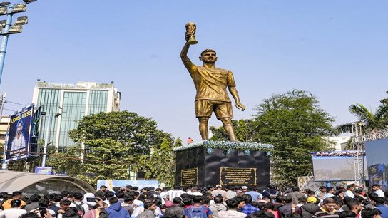 যুবভারতীতে মেসিকে ঘিরে বিশৃঙ্খলা হলেও হায়াতে তেমন কিছু হয়নি। তা নিয়ে সুজিত সংবাদমাধ্যমে যা বলেছেন, তাতে তাঁর শ্লাঘাই প্রকাশ পেয়েছে বলে অভিমত অনেকের। কিন্তু আদালত প্রশ্ন তুলে দিয়েছে জমির মালিকানা নিয়ে। সরকারের তরফে আইনজীবী কল্যাণ বন্দ্যোপাধ্যায় সোমবার আদালতে জানিয়েছিলেন, তাঁর কাছে এ বিষয়ে কোনও তথ্য নেই। মঙ্গলবারও একই কথা বললেন কল্যাণ। সেই সঙ্গে প্রশ্ন তুললেন, ‘‘সরকারি জায়গায় কি আর মূর্তি নেই? এই প্রথম কোনও মূর্তি হল না কি? রেড রোডে অম্বেডকর, মেয়ো রেডো মহাত্মা গান্ধী, হাজরা মোড়ে ইন্দিরা গান্ধী, শ্যামবাজারে নেতাজি, ধর্মতলায় লেনিনেরও মূর্তি আছে। কারও ক্ষমতা থাকলে কোর্টে গিয়ে বলুক যে, তারা মেসির মূর্তি ভাঙতে চায়।’’