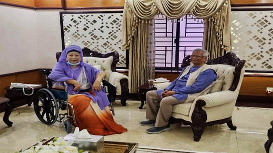 প্রধান উপদেষ্টা ইউনুস প্রথমেই খোঁজ নেন অসুস্থ খালেদা জিয়ার শারীরিক অবস্থার। দীর্ঘদিন ধরে শারীরিক নানা জটিলতায় ভুগছেন খালেদা, হাসপাতাল ও গৃহ-চিকিৎসার মধ্যেই কাটছে তাঁর সময়।